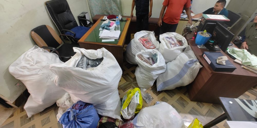 आज विहान करिब १०ः०० बजे नियमित चेकजाँचका क्रममा प्रहरी टोलीले वेवारीसे अवस्थामा फेला परेको करिब नौ लाख सन्तान्न हजार छ सय रुपैयाँ (रु. ९,५७,६००) मूल्य बराबरका लत्ता कपडाहरू र चौवन्न हजार तीन सय चालिस रुपैयाँ (रु. ५४,३४०) बराबरका किराना सामान बरामद गरेको हो।